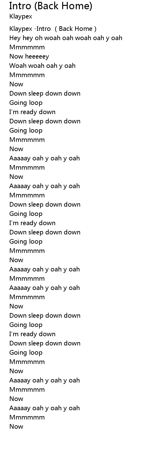 | [00:00.65] | Klaypex -Intro (Back Home) |