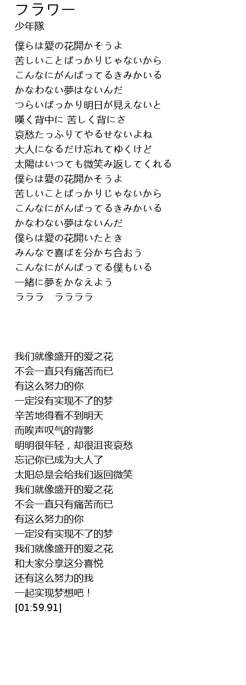 | [01:17.74] | 僕らは愛の花開かそうよ |