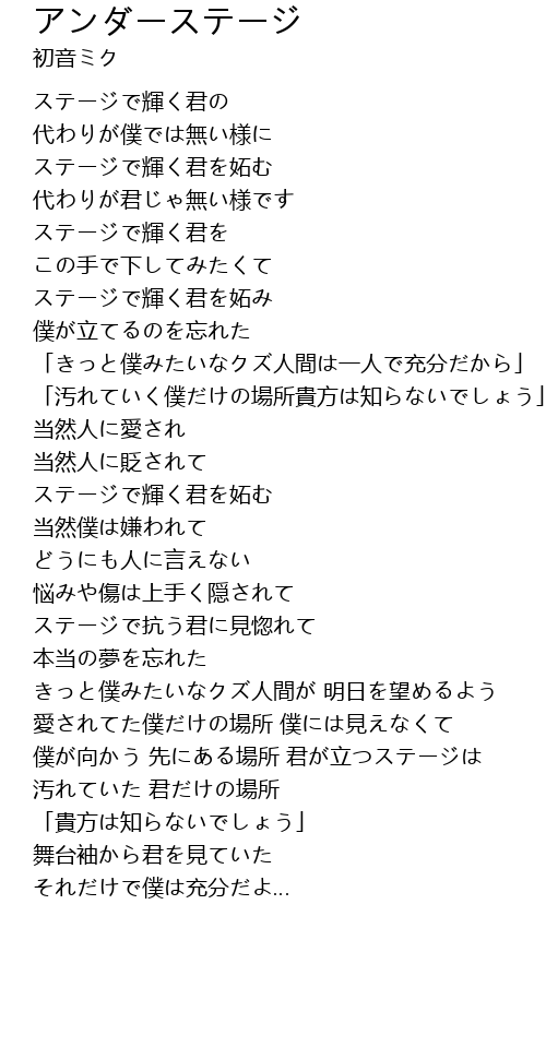 | [00:34.060] | ステージで輝く君を妬み |