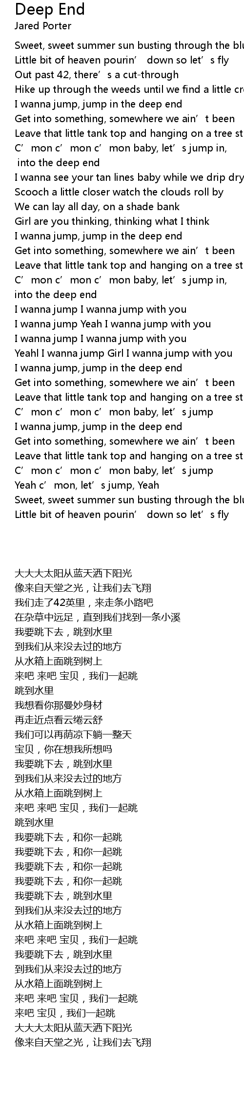 | [00:32.040] | I wanna jump, jump in the deep end |
