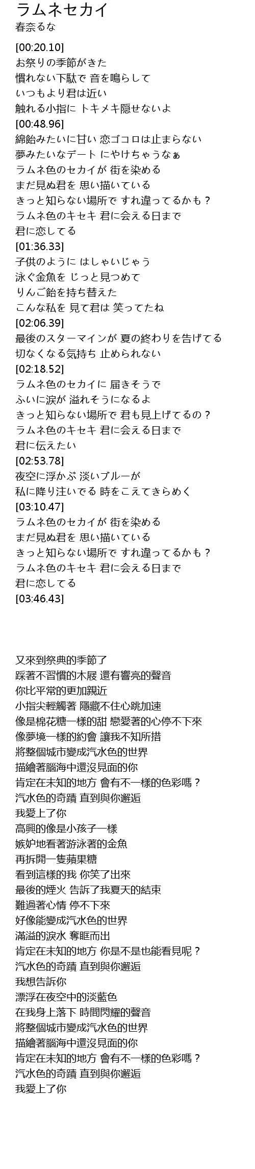 | [03:30.34] | 汽水色的奇蹟 直到與你邂逅 |