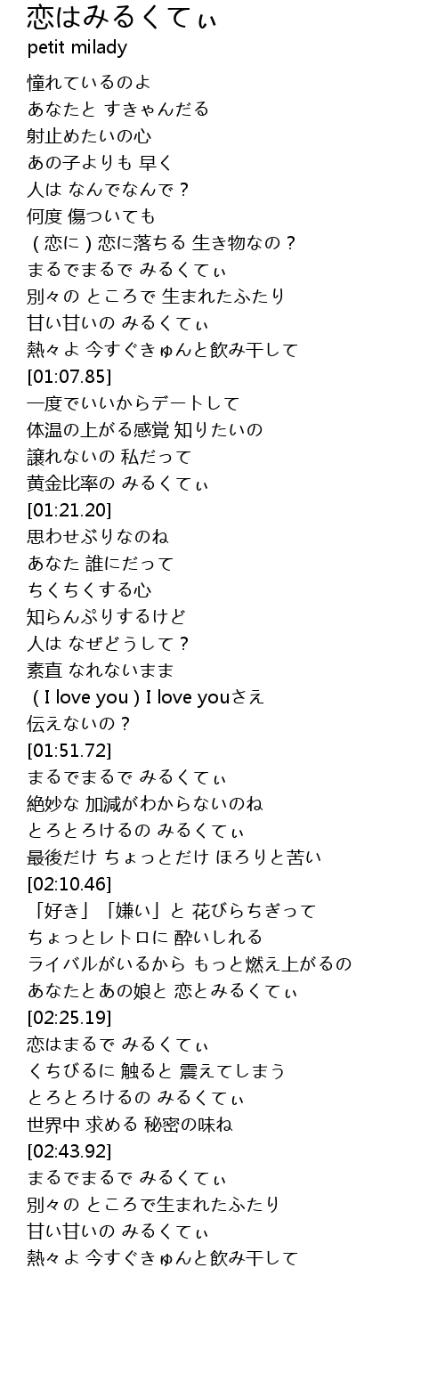 | [01:51.72] | まるでまるで みるくてぃ |