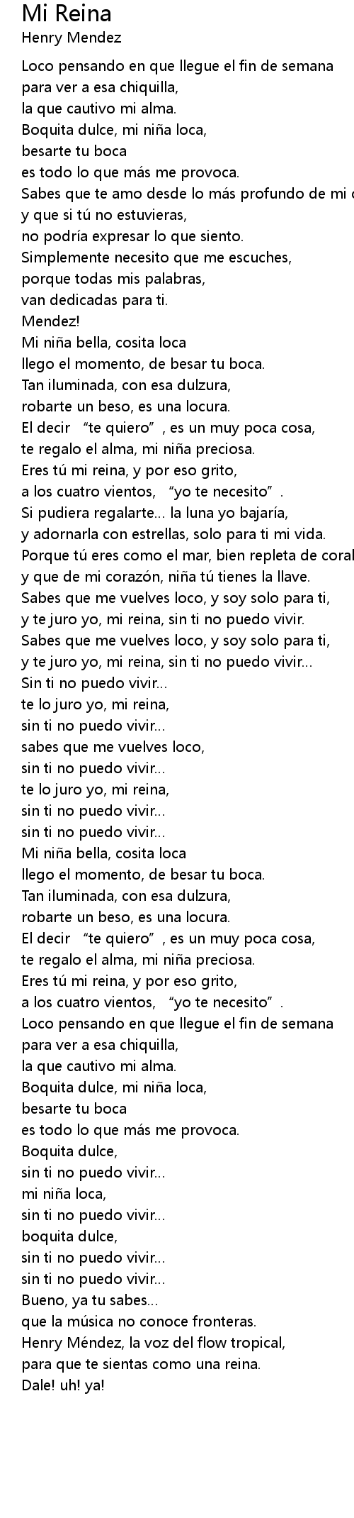 | y te juro yo, mi reina, sin ti no puedo vivir | |