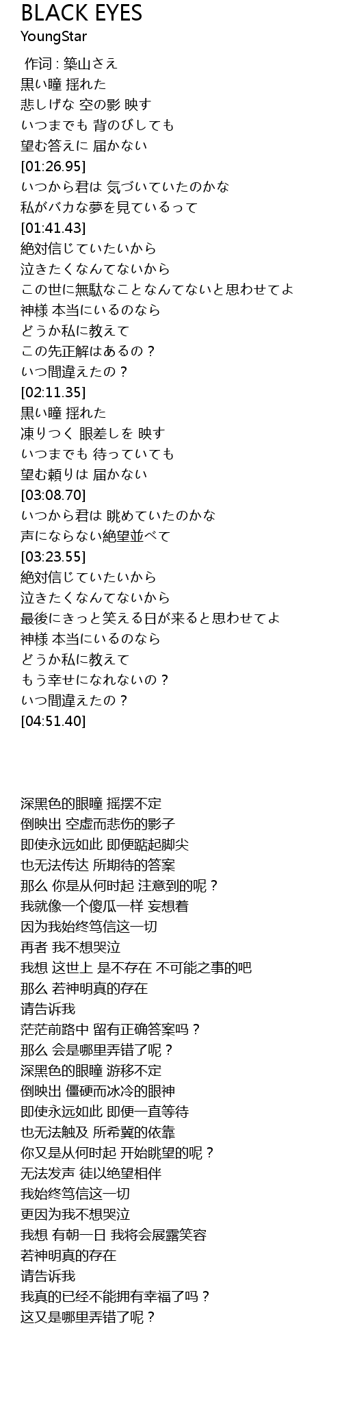 黒い瞳 揺れた |