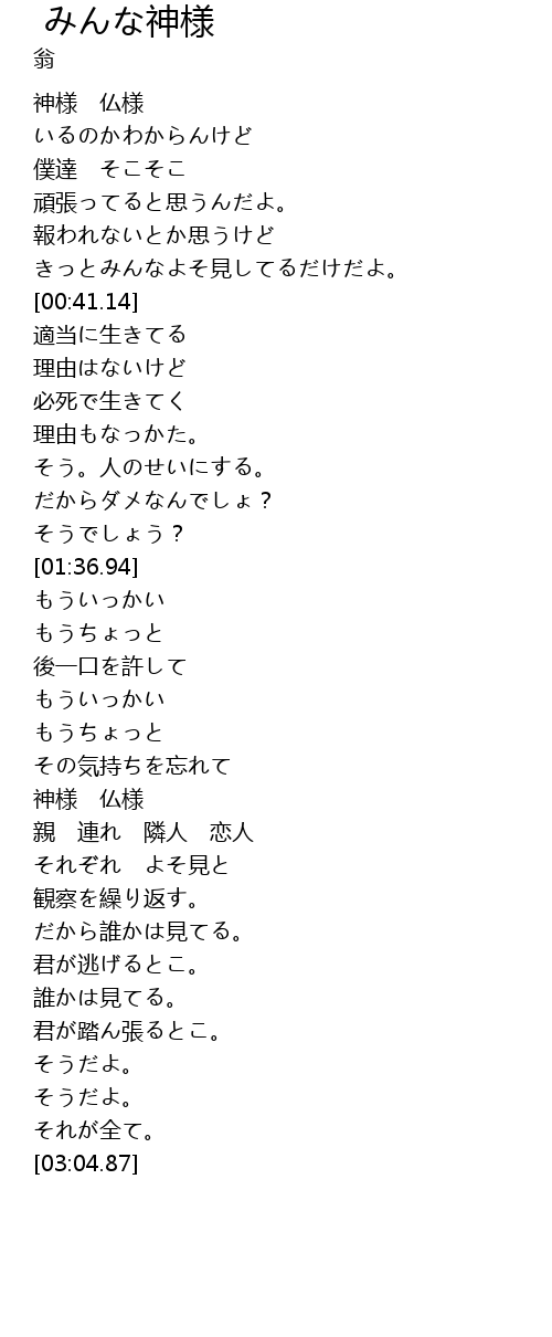 | [00:01.24] | 神様 仏様 |