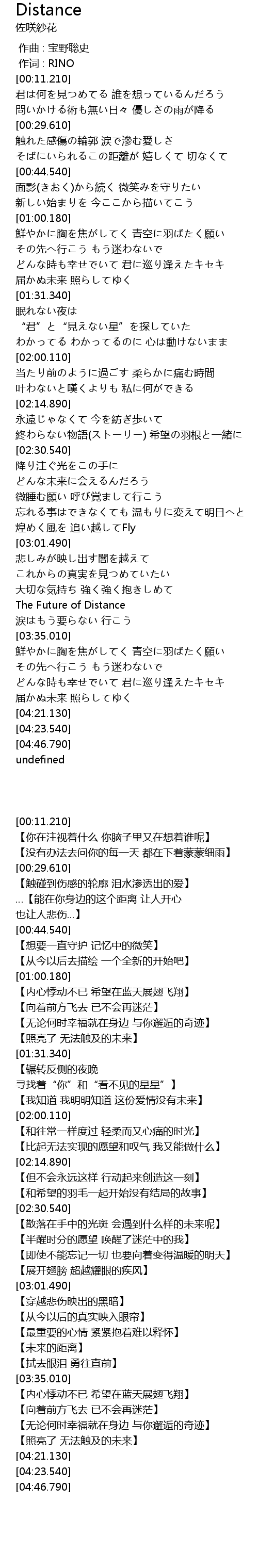 | [04:03.650] | 【无论何时幸福就在身边 与你邂逅的奇迹】 |