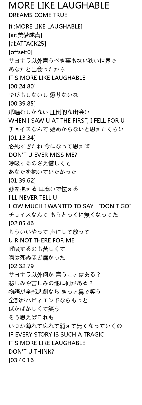 | [03:31.57] | IT'S MORE LIKE LAUGHABLE |