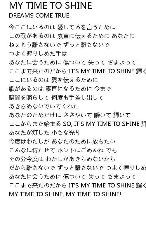 | MY TIME TO SHINE, MY TIME TO SHINE! |