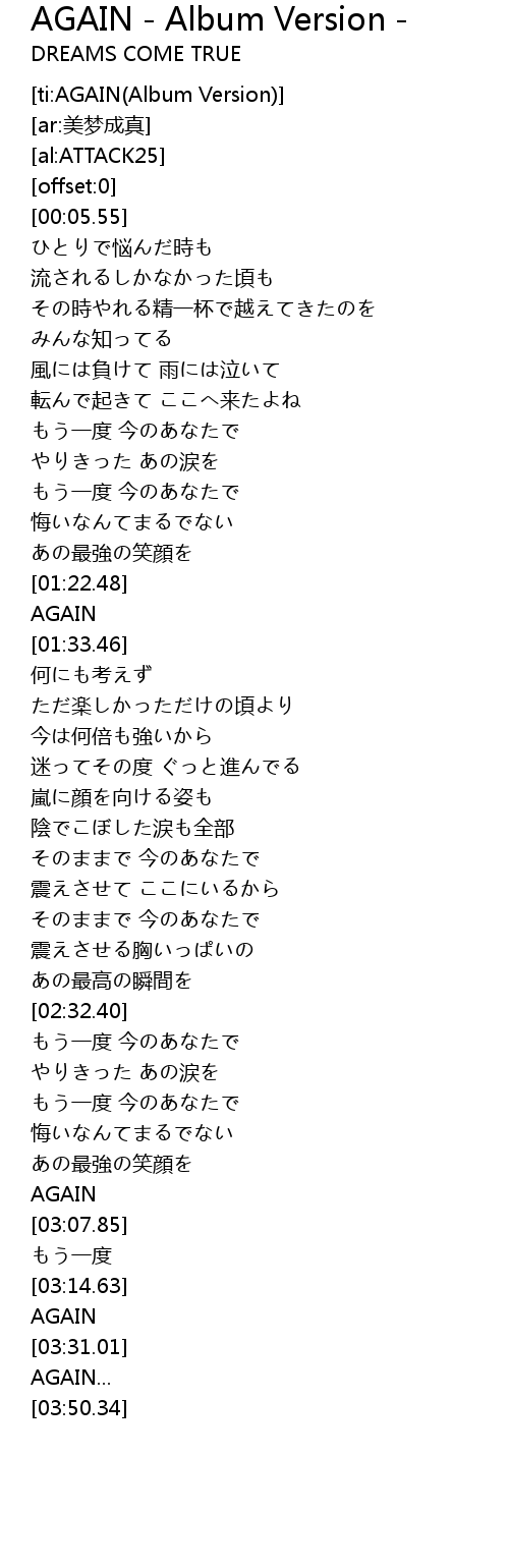 | [00:49.54] | 転んで起きて ここへ来たよね |