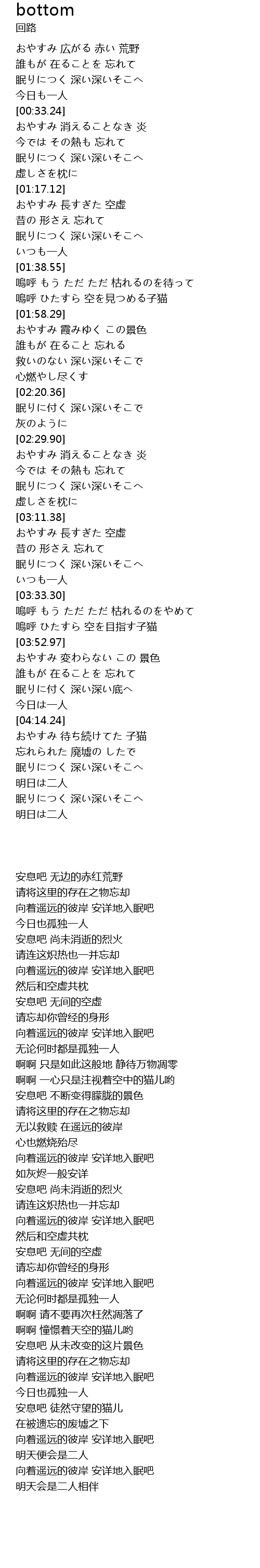 | [00:55.75] | おやすみ 消えることなき 炎 |