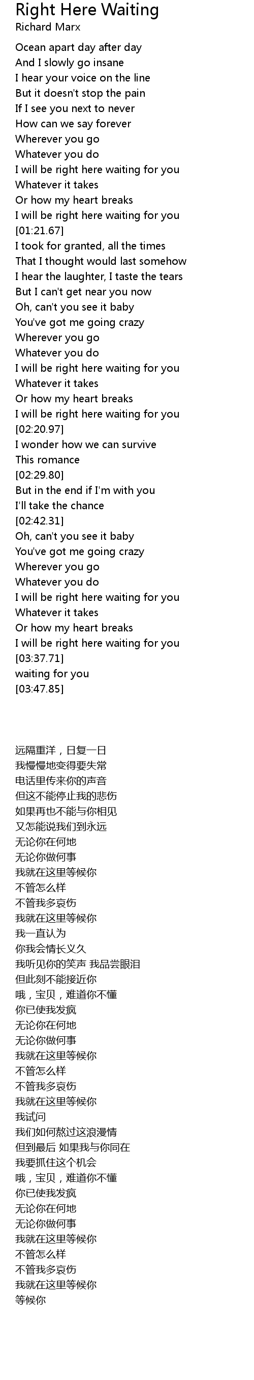 I will be right here waiting for you |