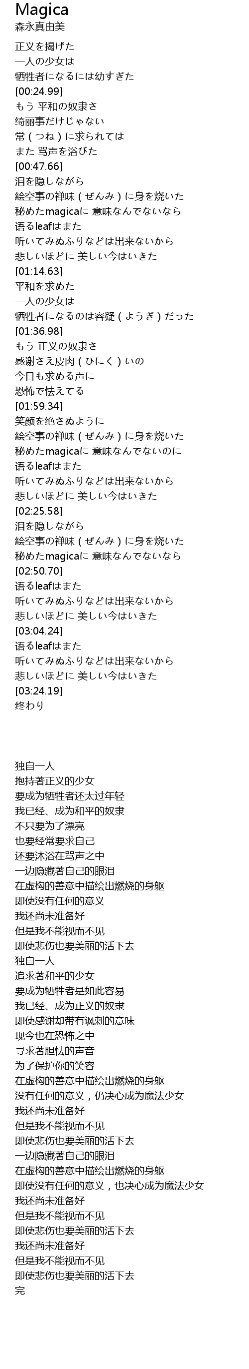 | [02:07.20] | 没有任何的意义,仍决心成为魔法少女 |