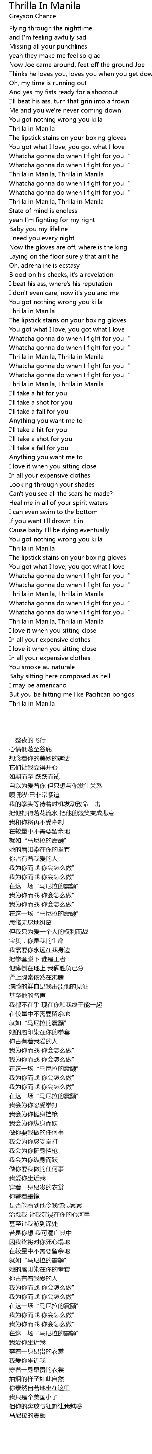 | [01:50.91] | Thrilla in Manila, Thrilla in Manila |