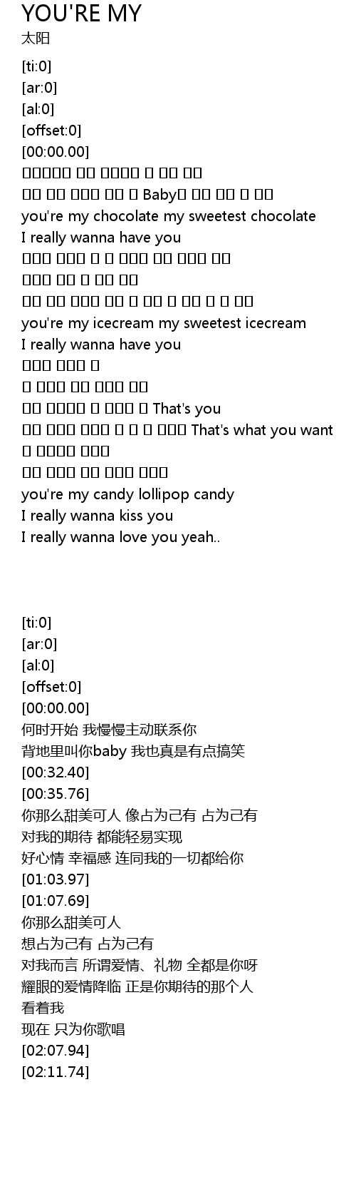 | [00:32.40] | you' re my chocolate my sweetest chocolate |