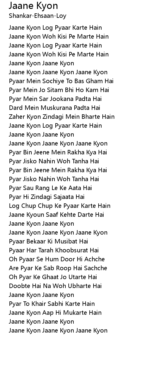 Jaane Kyon Jaane Kyon Jaane Kyon |
