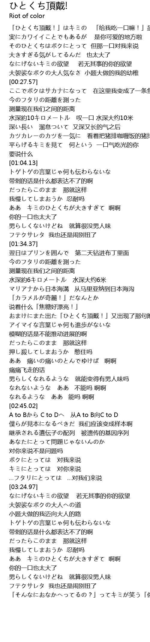 | [02:01.34] | おまけにまた出た「ひとくち頂戴!」又出现了那句附加的「给我吃一口嘛!」 |