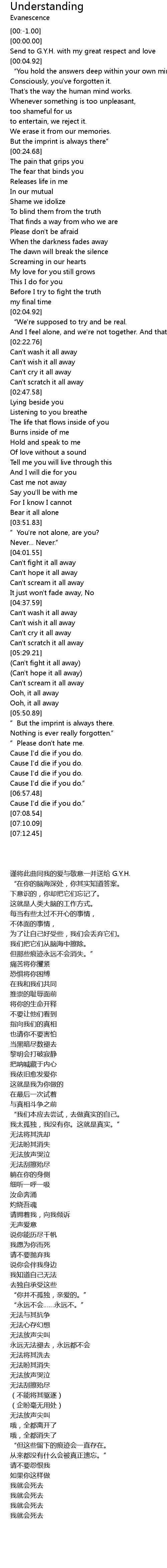 | 歌曲 | Understanding |