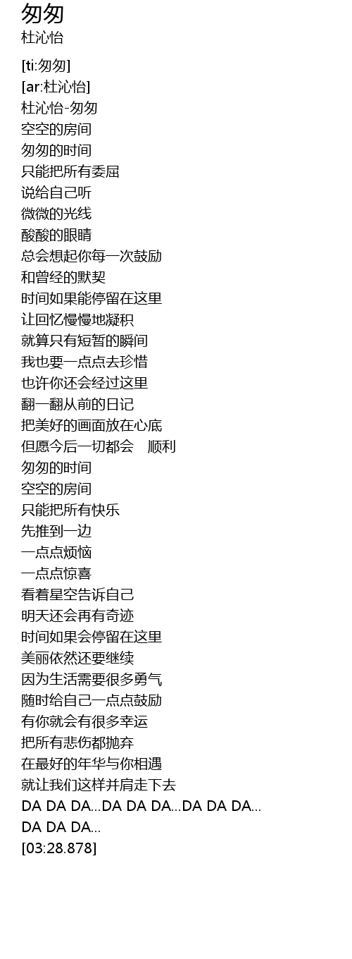 | [00:00.264] | 杜沁怡-匆匆 |