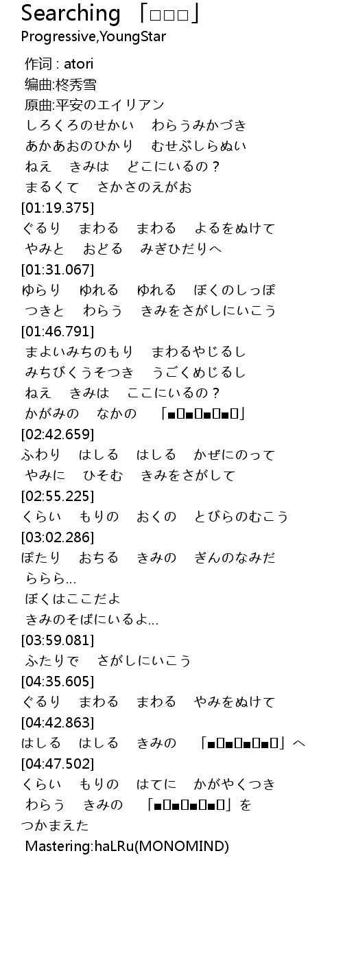 | [05:12.183] | Mastering: haLRu MONOMIND |