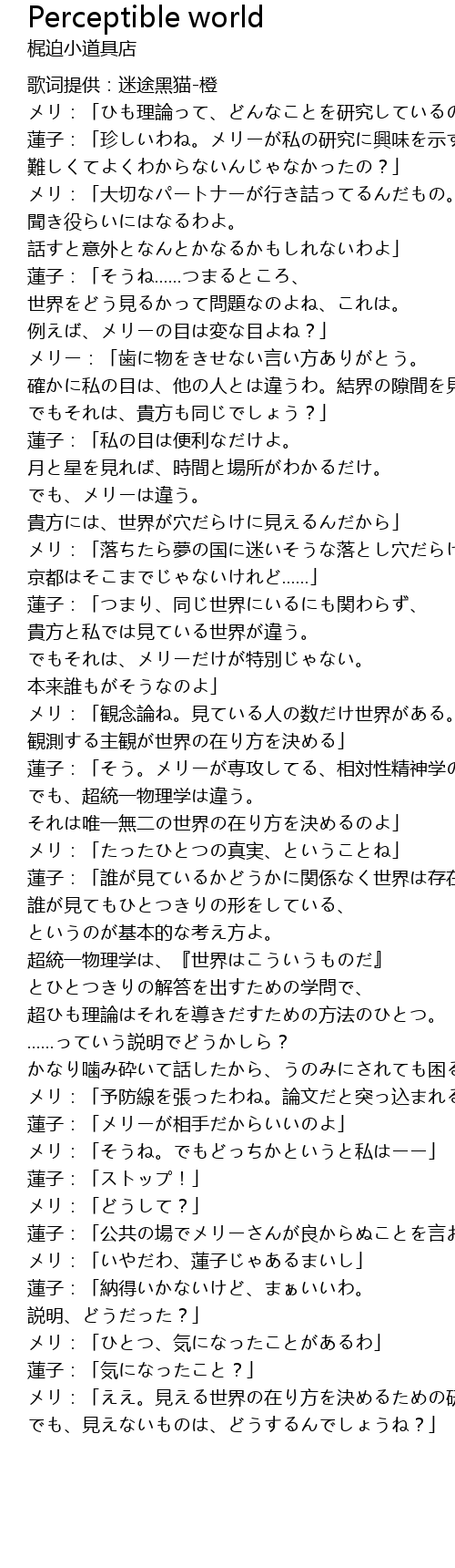 | [02:04] | メリ:「観念論ね。見ている人の数だけ世界がある。 |