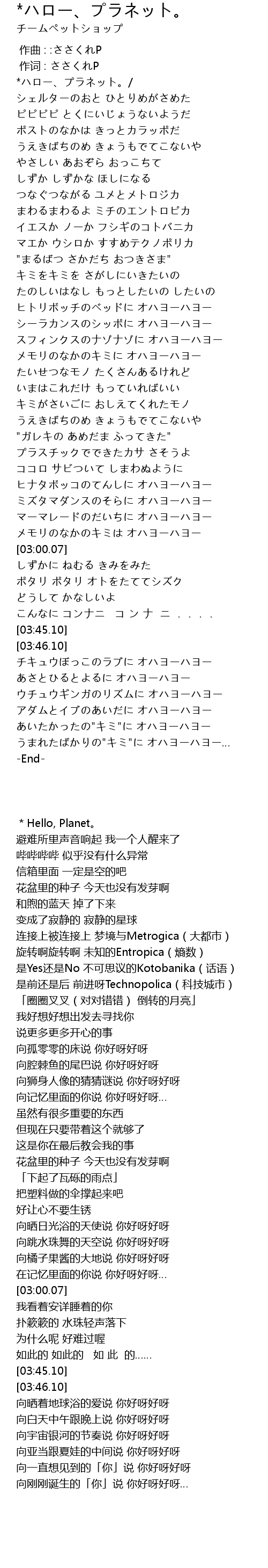 | [03:58.71] | 向宇宙银河的节奏说 你好呀好呀 |