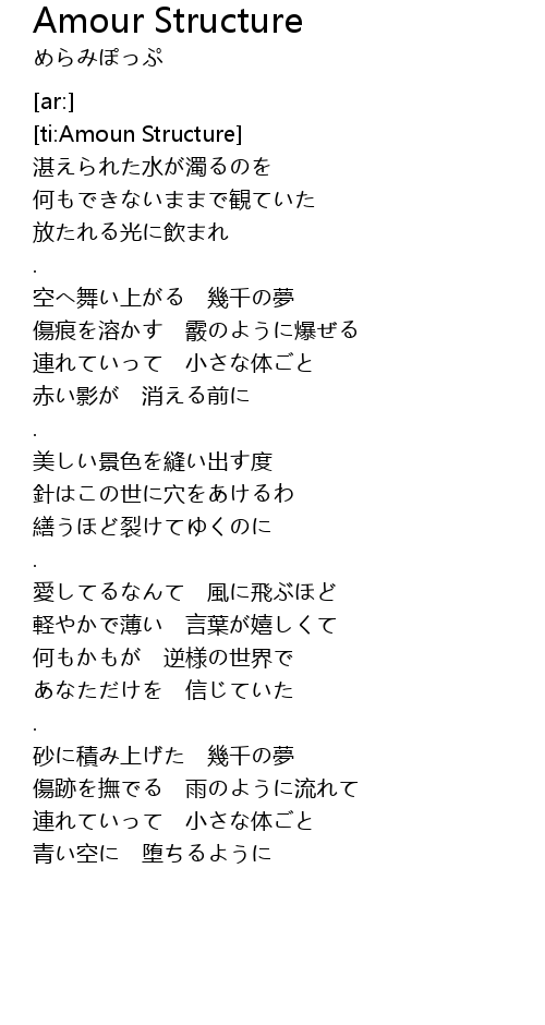 | [00:47.37] | 傷痕を溶かす 霰のように爆ぜる |