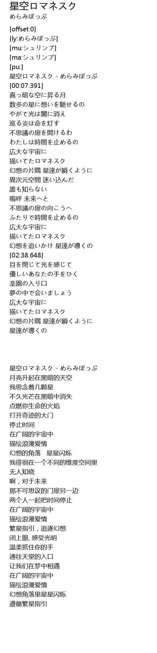 | [00:00.000] | 星空ロマネスク - めらみぽっぷ |