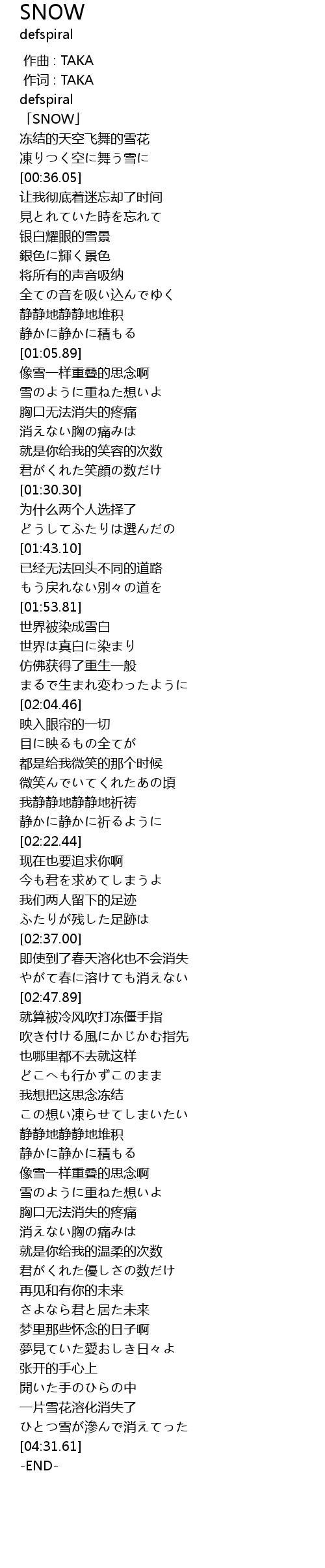 [04:22.44] yī piàn xuě huā róng huà xiāo shī le