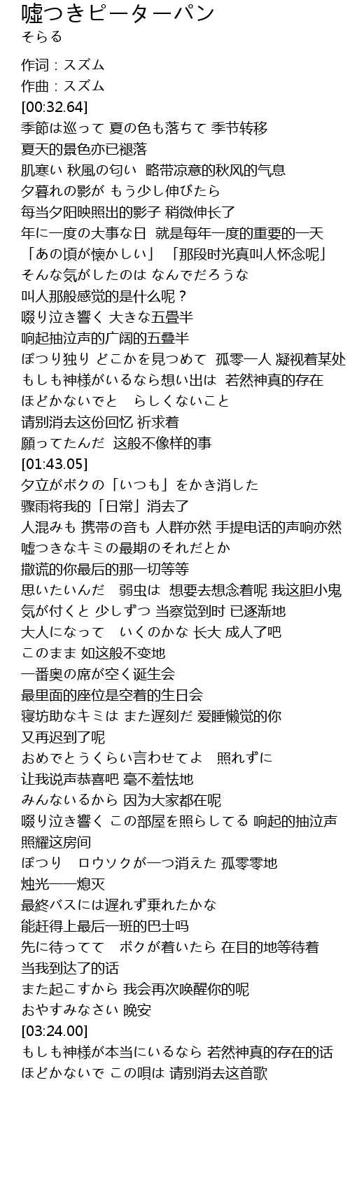 | 歌曲 | 噓つきピーターパン |