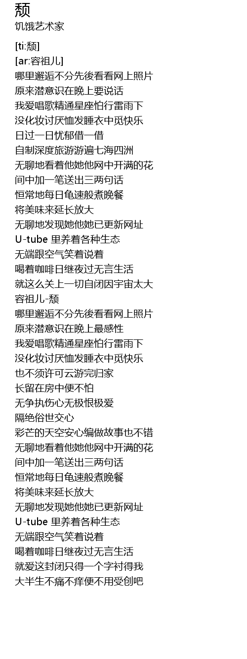 | [01:35.316] | 容祖儿-颓 |