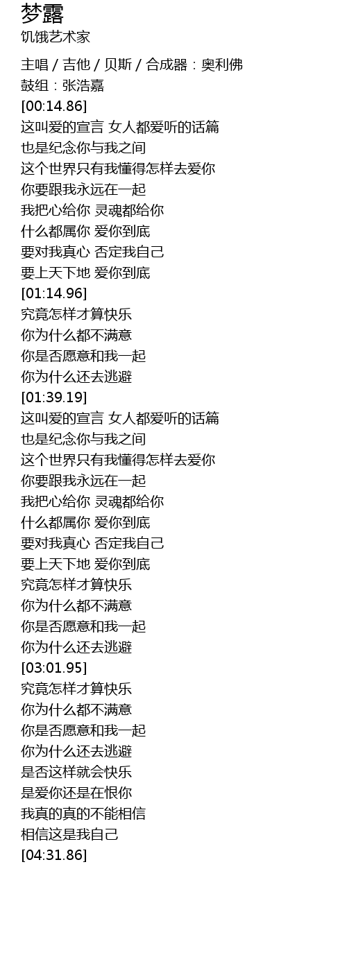 | [00:04.43] | 主唱/吉他/贝斯/合成器:奥利佛 |