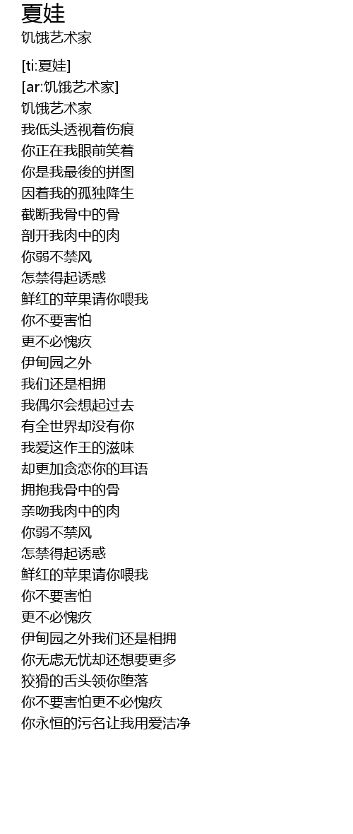 | [03:07.574] | 伊甸园之外我们还是相拥 |