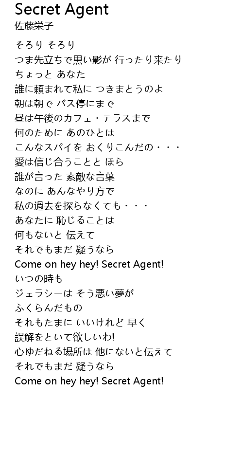 | Come on hey hey! Secret Agent! |