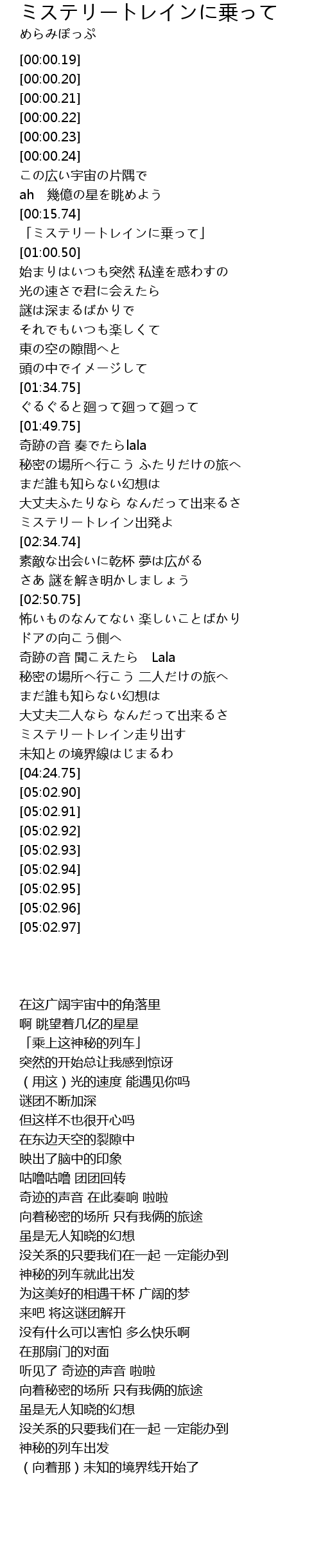 | [00:30.75] | 「乘上这神秘的列车」 |