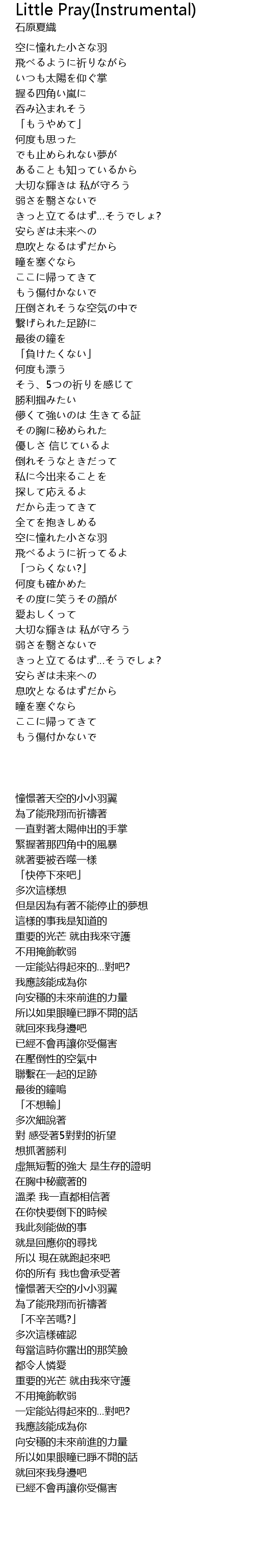 | 歌曲 | Little Pray(Instrumental) |