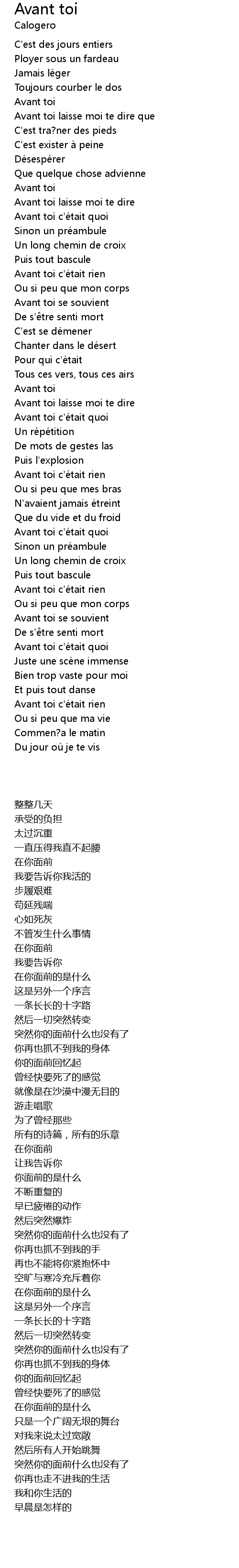 | 歌曲 | Avant toi |