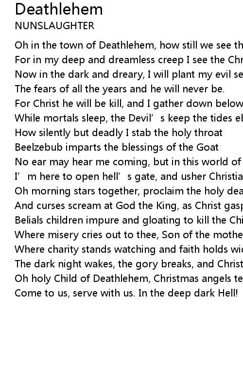 | Oh in the town of Deathlehem, how still we see thee lie! | |