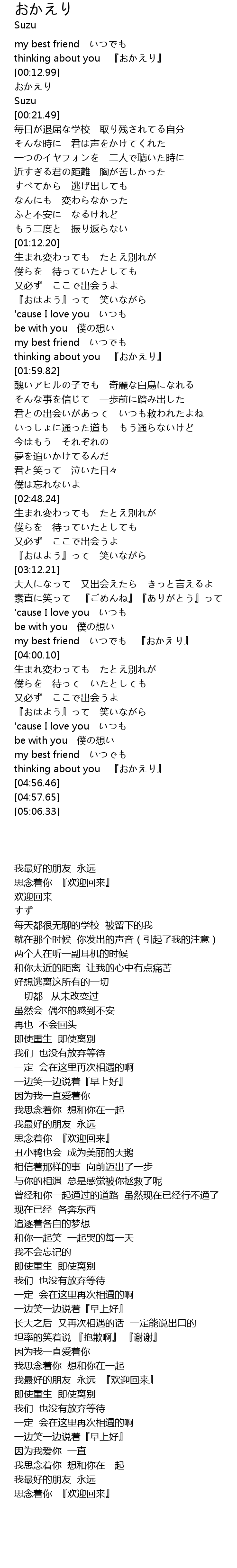 | [03:48.13] | my best friend いつでも 『おかえり』 |