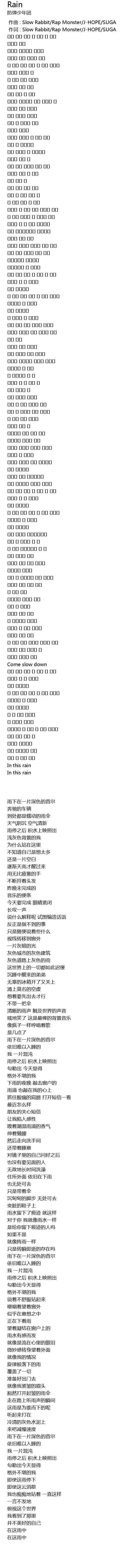 | [00:00.786] | 作词 : Slow Rabbit/Rap Monster/J-HOPE/SUGA |