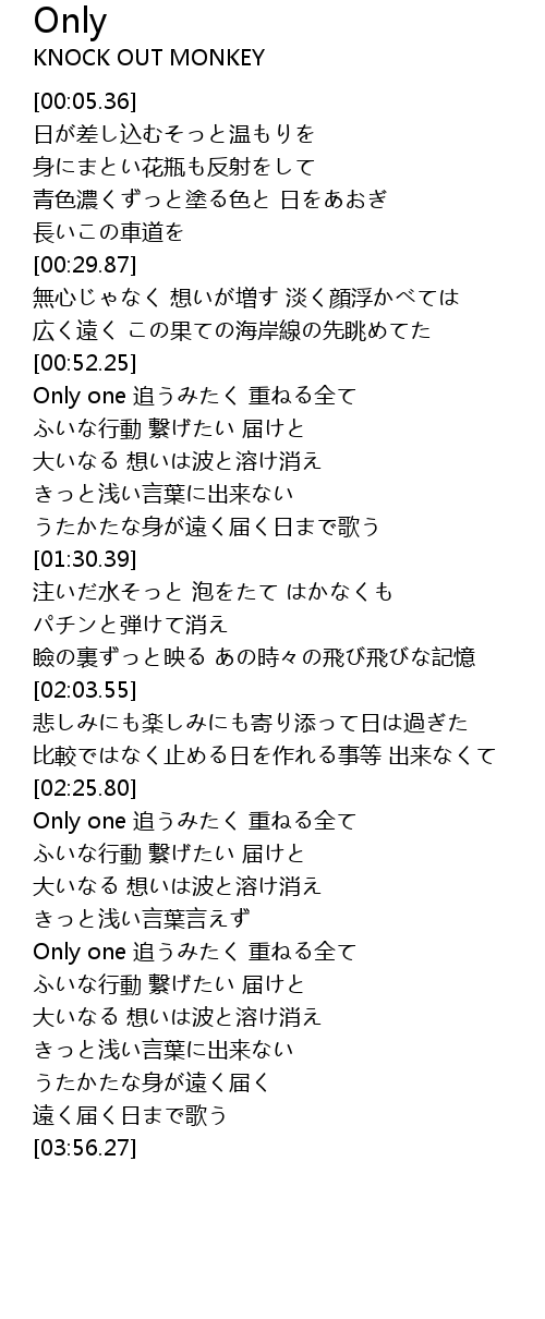 | [00:53.04] | Only one 追うみたく 重ねる全て |