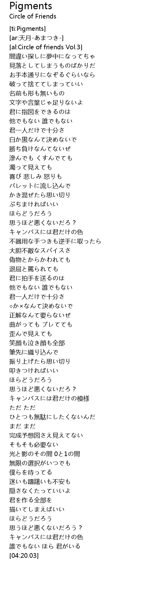 | [03:55.71] | キャンバスには君だけの色 |