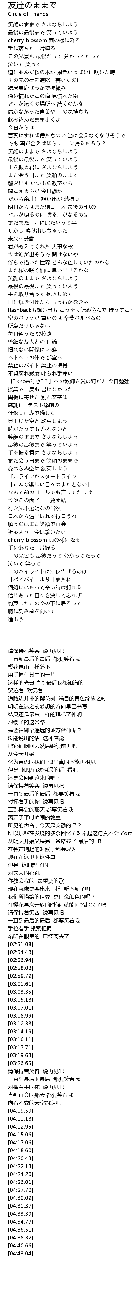 | [04:20.43] | 願うのはまた笑顔で再会 |