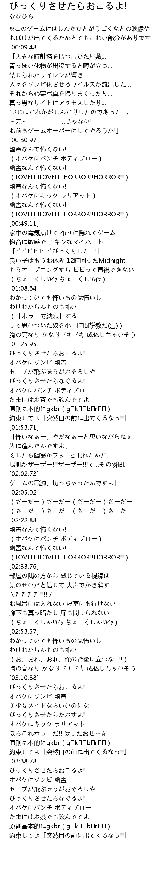 | [00:06.48] | おばけが出てくるためとてもこわい部分があります |