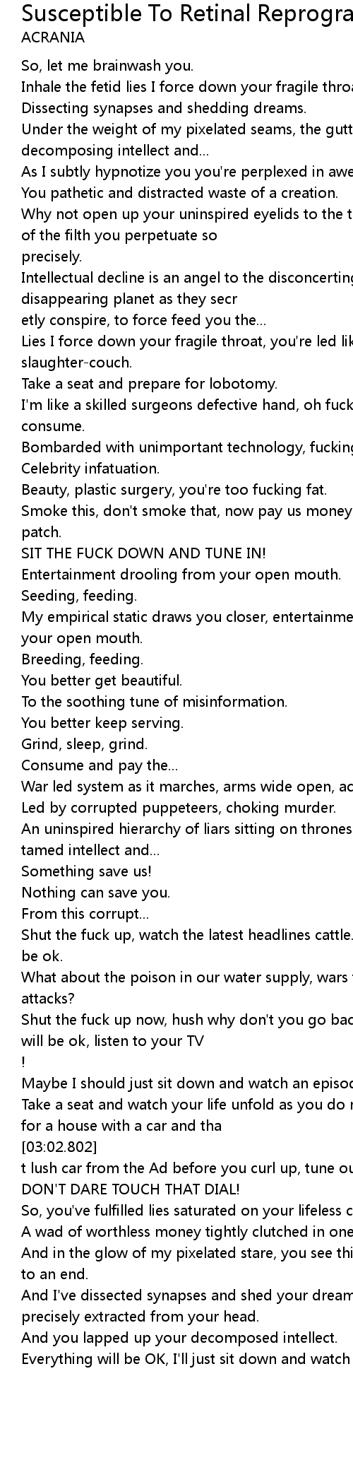 Susceptible To Retinal Reprogrammability 歌词