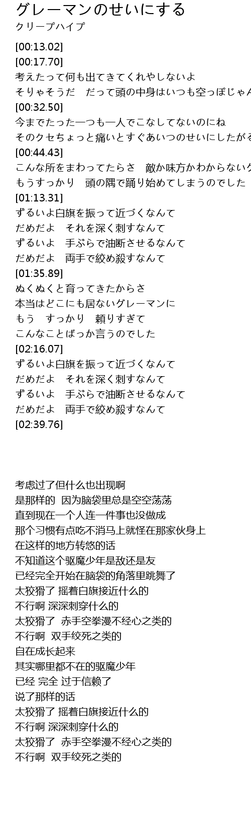 | 歌曲 | グレーマンのせいにする |