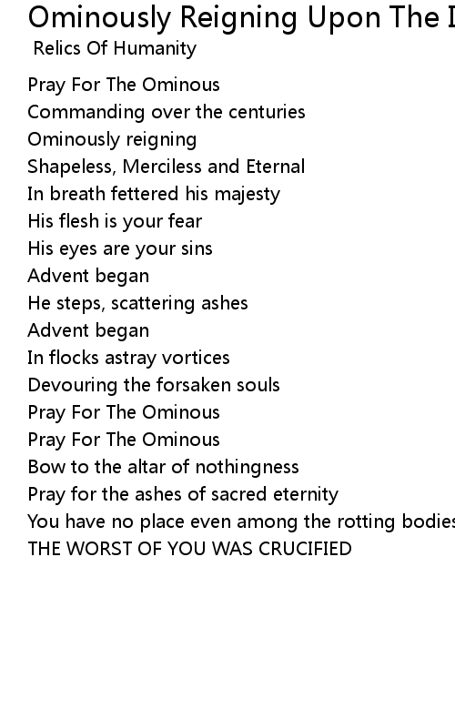 | 歌曲 | Ominously Reigning Upon The Intangible |