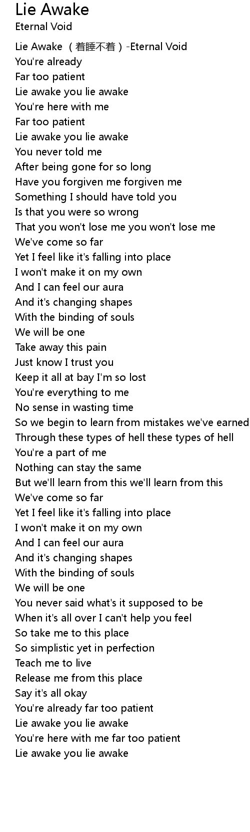 | [00:00.00] | Lie Awake (着睡不着)-Eternal Void |