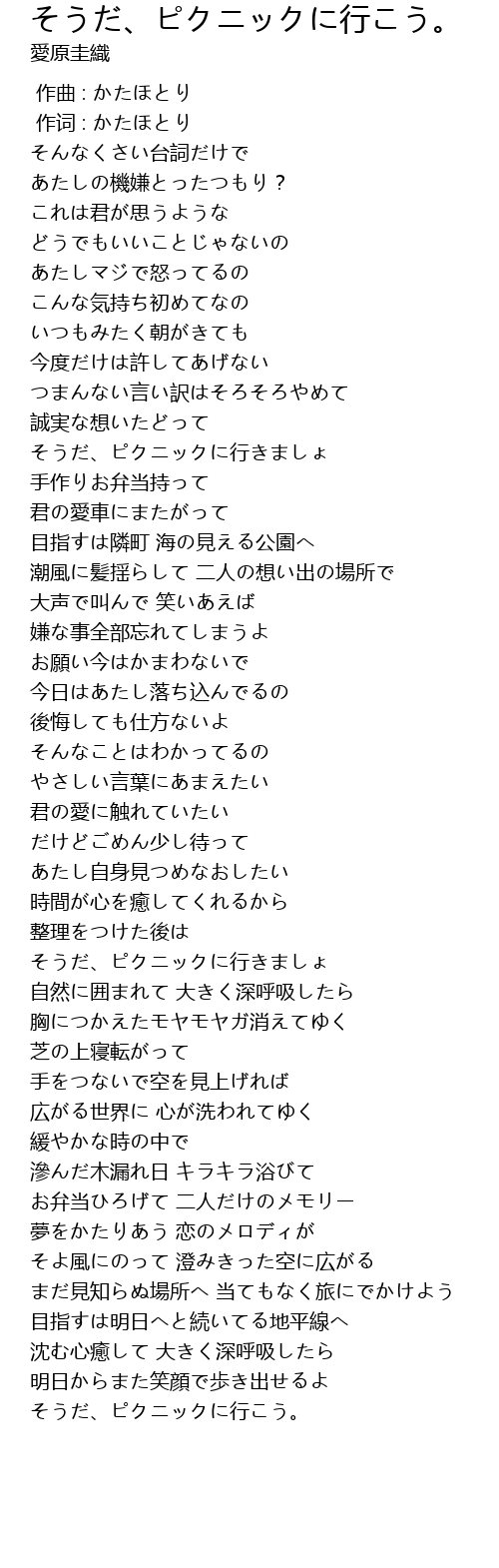 | [03:30.620] | そうだ、ピクニックに行こう。 |