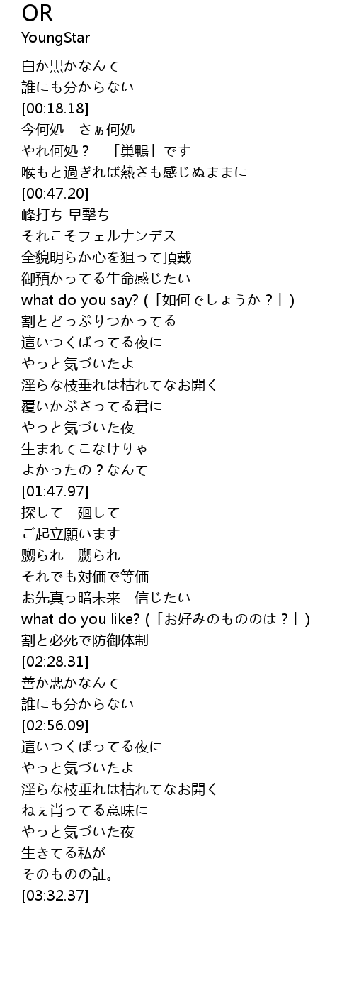 | [02:22.10] | what do you like? (「お好みのもののは?」) |
