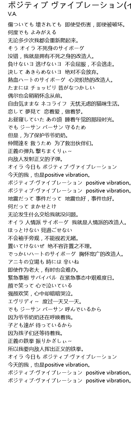 | [02:55.03] | ポジティブ·ヴァイブレーション positive vibration。 |